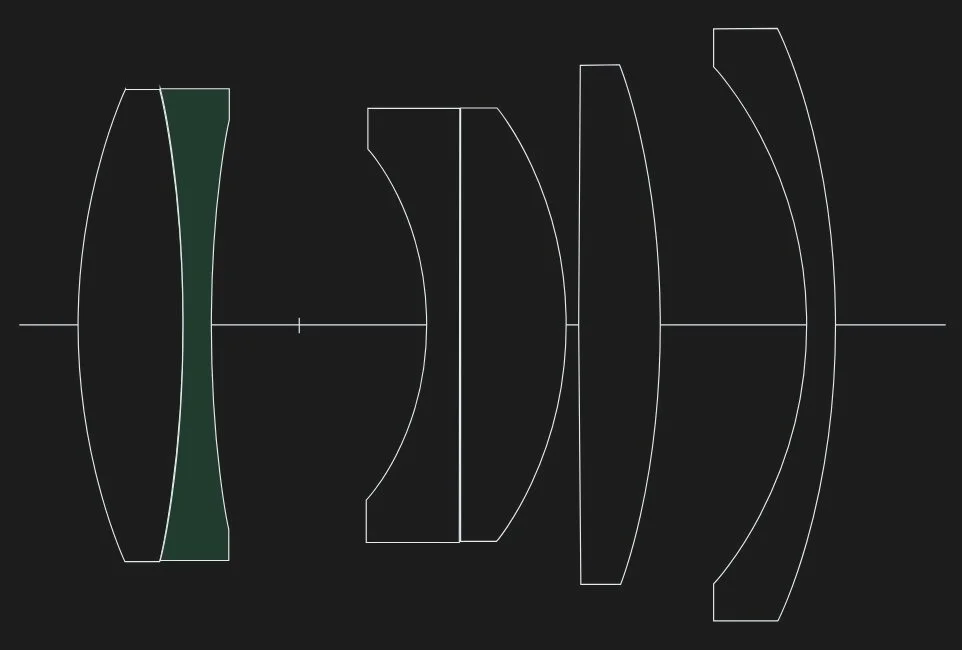 While 27mm as far as the actual optical construction, this 6 element/4 group design achieves a field of view of 53.7°, which is what a 40mm lens looks like on a full-frame sensor.